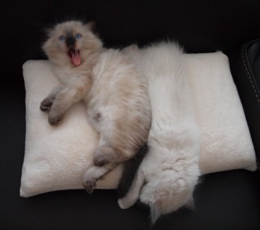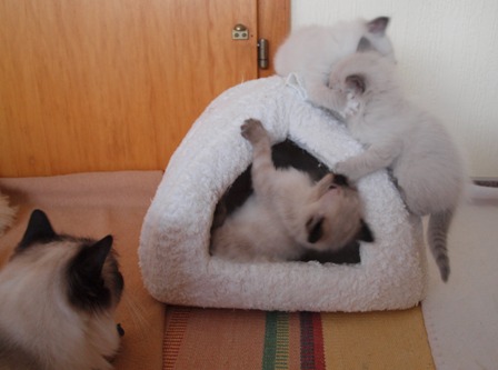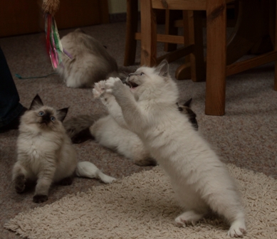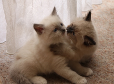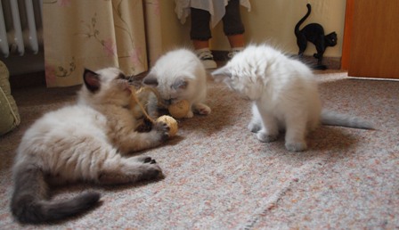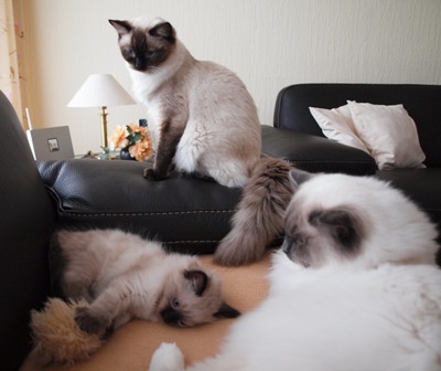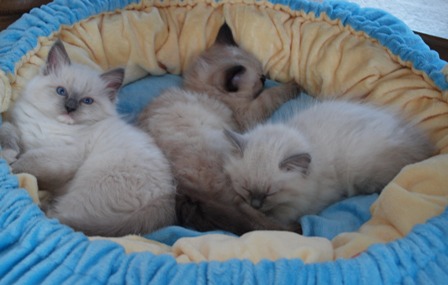 Unsere "3 Musketiere" heißen: * Sir Aramis vom Sternenmeer, blue colourpoint * Sir Athos-Quattrovom Sternenmeer, blue mitted * Sir Porthos vom Sternenmeer, seal colourpoint